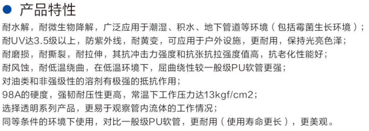 高性能耐用PU管