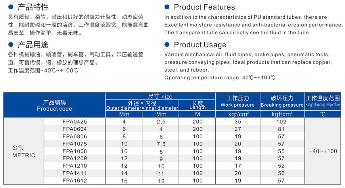 防冻耐水解PU管
